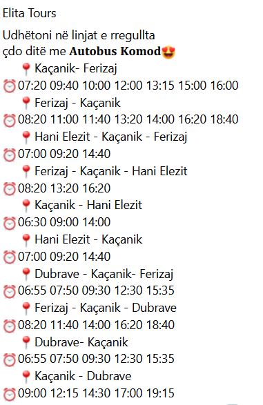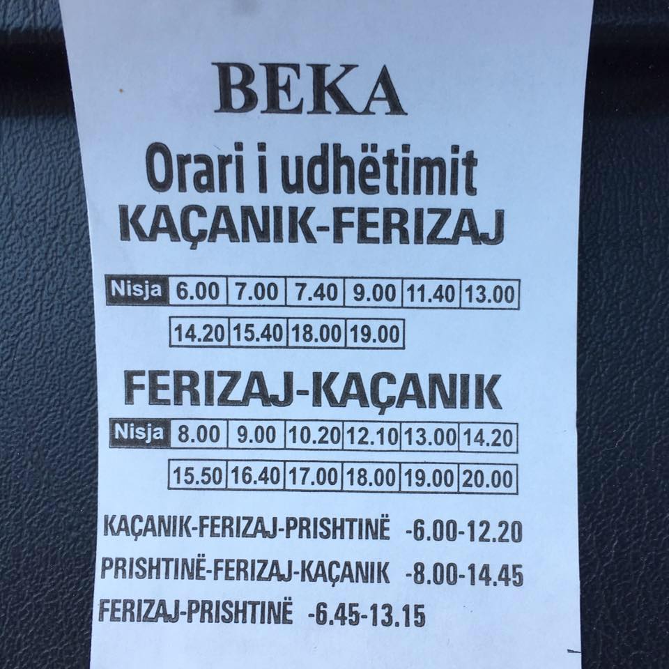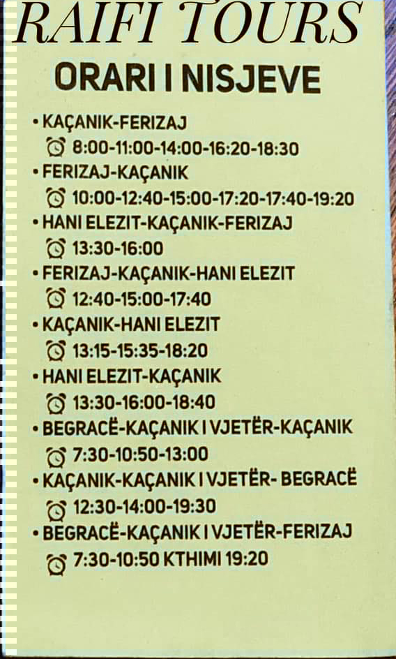 Orari i autobusëve nga Kaçaniku për në destinaconet e tjera.